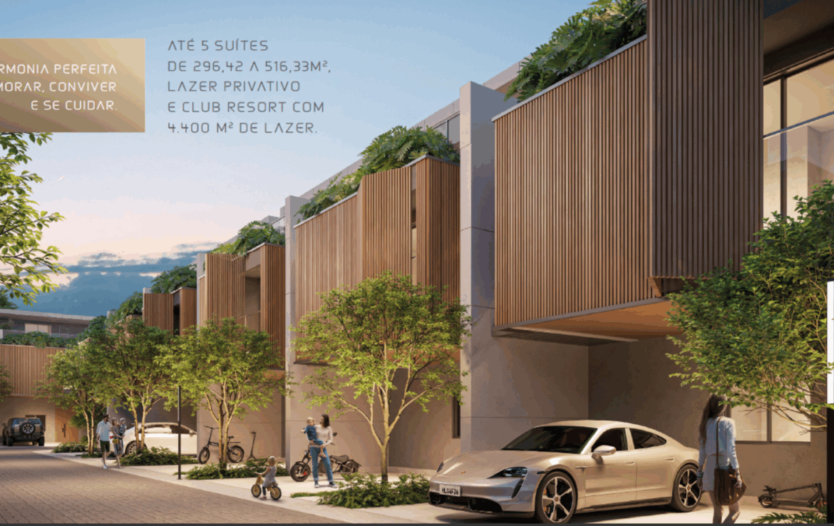 CASAS COM ATÉ 5 SUÍTES DE 296,42 A 516,33M2, LAZER PRIVATIVO E CLUB RESORT COM 4.400 M2 DE LAZER.