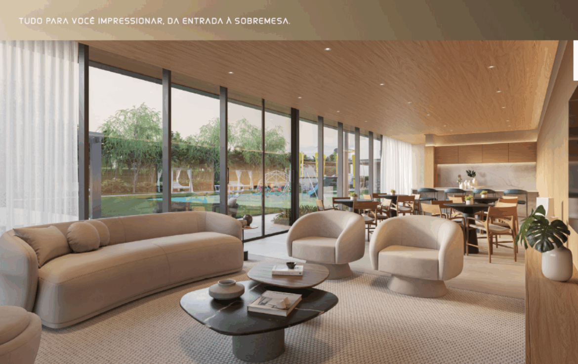 Tudo isso com a segurança e a tranquilidade de um condomínio fechado, sem se preocupar com a manutenção de jardim, piscina e demais ambientes.