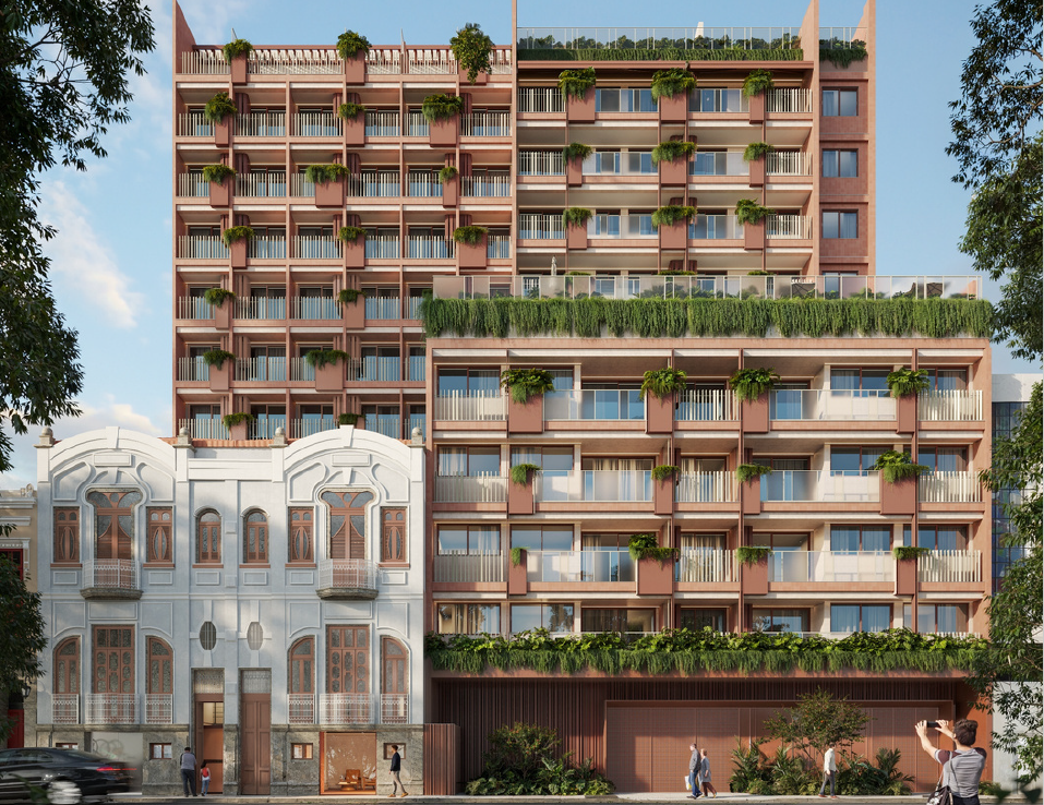 O projeto conta com dois rooftops com lazer, além de portaria, bicicletário, lavanderia e coworking.