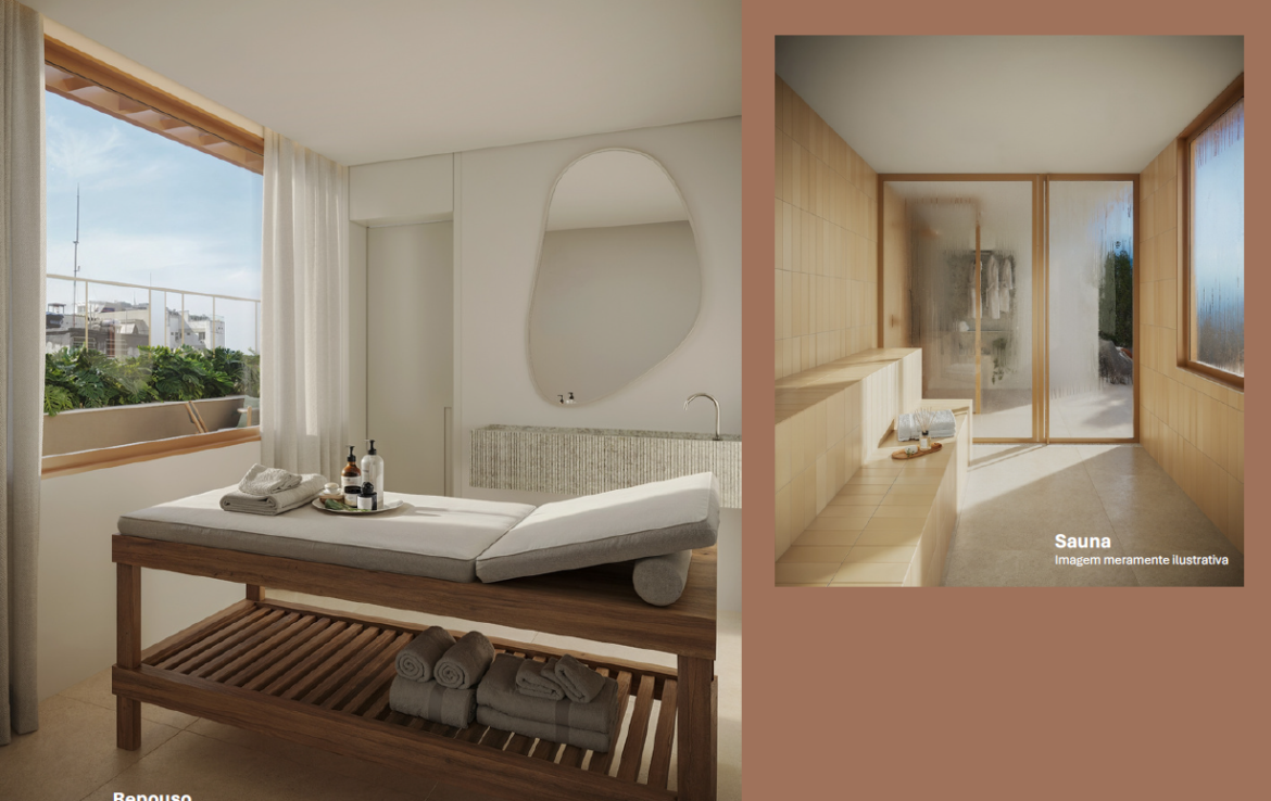 Áreas de lazer: Piscina, churrasqueira, sauna, bar gourmet, lounge e mais