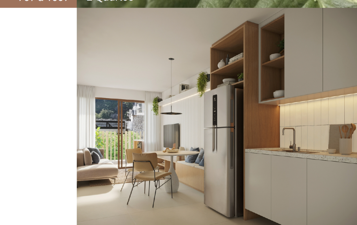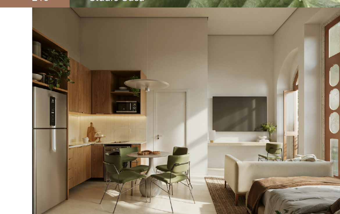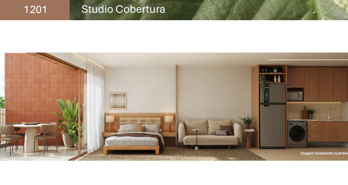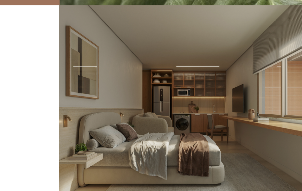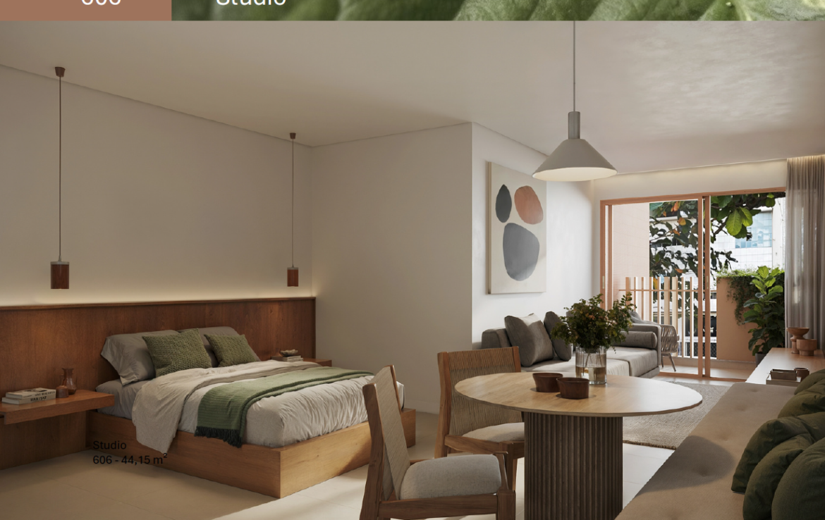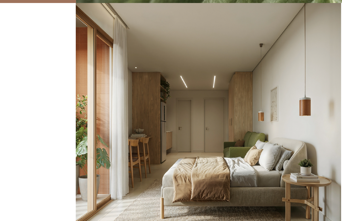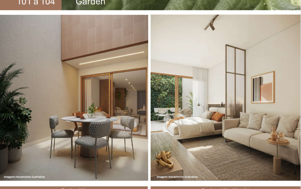 Unidades entre studios, gardens, 2 quartos com suíte e coberturas.